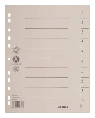 DONAU 8610001-25, 100-pack skiljeblad, färg: ljusbrun/kartongregister, överdimensionerat, tillverkad av återvunnen kartong, 250 g/kvm med linjemönster för DIN A4, 4-fack, perforering, skiljeflikar,