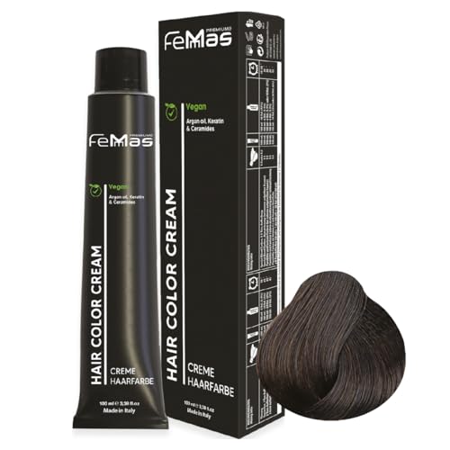 FemMas Hårfärg, ljusbrun aska 5.1, professionell färgkräm med arganolja, keratin och ceramider, permanent färg eller toning för långvariga resultat, 100 ml