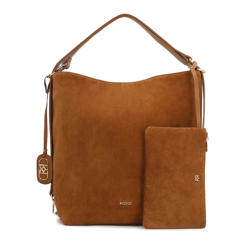Kazar, Väskor , Dam, ONE Size, Mocka, Mockaväska i ljusbrun färg med handtag