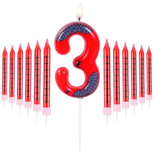 URAQT Födelsedagsljus 3D-form, blå röda ljus med spindelväv, spindel födelsedag nummer 3 ljusdekoration, lämplig för spindeltema födelsedag årsdag bröllopsfest examensfest