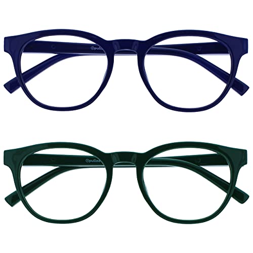 OPULIZE Blu – läsglasögon blått ljusfilter 2-pack cool rund ram fjädergångjärn förbättra sömnen dator gaming speglad män kvinnor BB5-13, Blå/grön, +1,50 Dioptrien