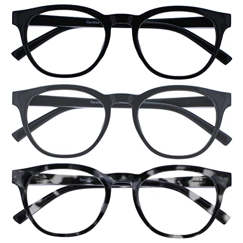 Opulize Blu – läsglasögon blått ljusfilter 3-pack cool rund ram fjädergångjärn förbättra sömnen dator gaming speglad män kvinnor BBB5-137, Svart/grå/grå svart sköldpadda, +3,50 Dioptrien