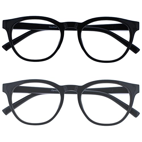 OPULIZE Blu – läsglasögon blått ljusfilter 2-pack cool rund ram fjädergångjärn förbättra sömnen dator gaming speglad män kvinnor BB5-13, Svart/grå, +0,00 Dioptrien