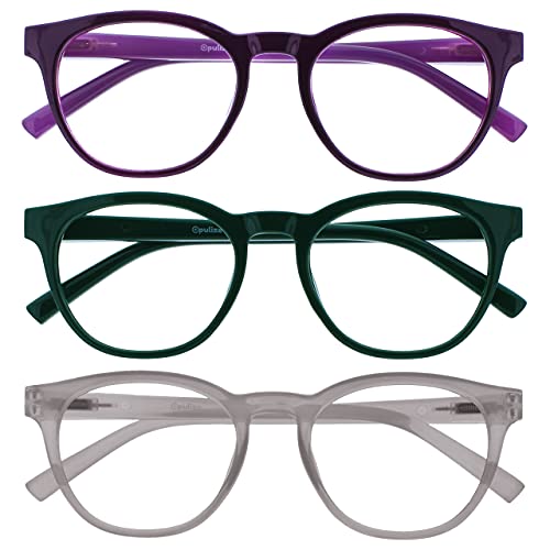 OPULIZE Blu – läsglasögon blått ljusfilter 3-pack cool rund ram fjädergångjärn förbättra sömnen dator gaming speglad män kvinnor BBB5-137, Lila/grön/is, +2,00 Dioptrien