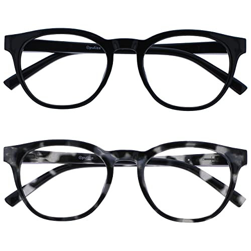 OPULIZE Blu – läsglasögon blått ljusfilter 2-pack cool rund ram fjädergångjärn förbättra sömnen dator gaming speglad män kvinnor BB5-13, Svart/grå svart sköldpadda, +1,00 Dioptrien