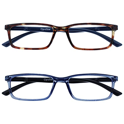 OPULIZE Blu – läsglasögon blått ljusfilter 2-pack cool rund ram fjädergångjärn förbättra sömnen dator gaming speglad män kvinnor BB5-13, Svart/grå svart sköldpadda, +2,00 Dioptrien