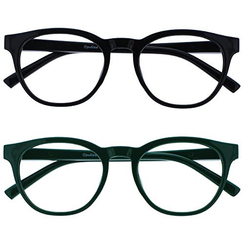 OPULIZE Blu – läsglasögon blått ljusfilter 2-pack cool rund ram fjädergångjärn förbättra sömnen dator gaming speglad män kvinnor BB5-13, Svart/grön, +0,00 Dioptrien