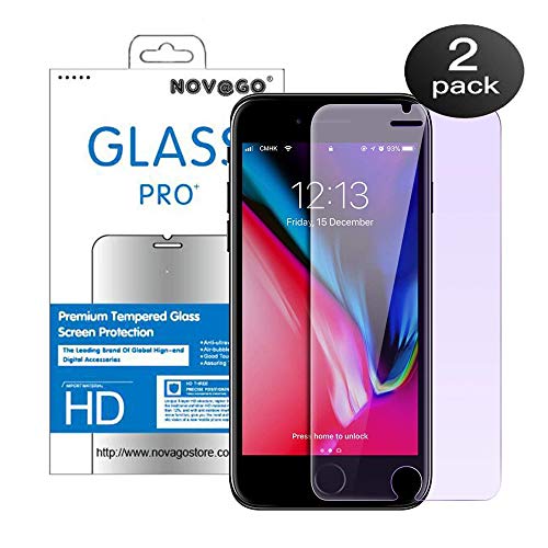 Novago kompatibel med iPhone 6, 6S, iPhone 7, iPhone 8 - tunt, härdat glas skärmskydd med blått ljusfilter (X2)
