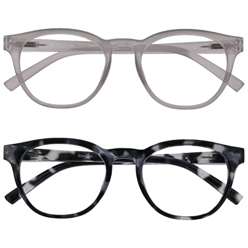 OPULIZE Blu – läsglasögon blått ljusfilter 2-pack cool rund ram fjädergångjärn förbättra sömnen dator gaming speglad män kvinnor BB5-13, Is/grå svart sköldpadda, +1,50 Dioptrien