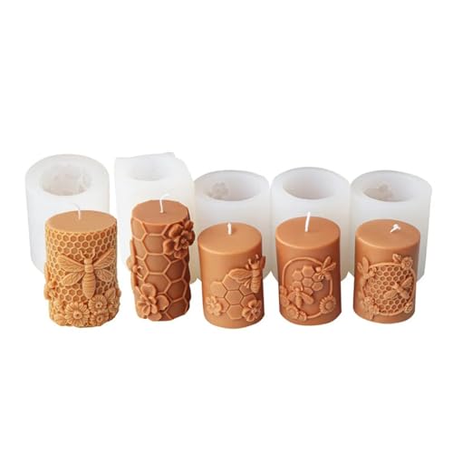 AMENGJ Silikon ljusform 3D cylindrisk silikonform för ljus, 5 st, blomform, för aromaterapi, tvål, gips, heminredning