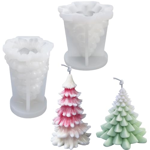 AROMUJOY 2 stycken ljusformer silikon, 3D julgran ljusform, gjutformar silikon jul, silikonform julgran för gör-det-själv doftljus hantverk ornament