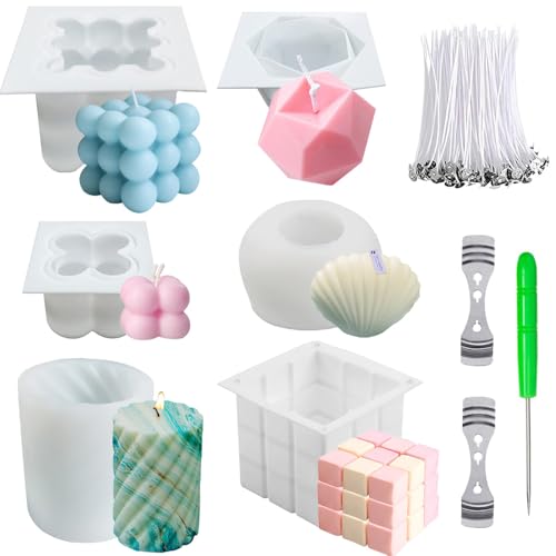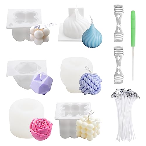 NICAVKIT 6 st ljusform, bubble ljussats, 3D gör-det-själv silikonform ljusgjutning former och ljusveke set, silikon ljusformar för gjutning som hemdekorationer, pysselornament, gör-det-själv doftljus, tvål