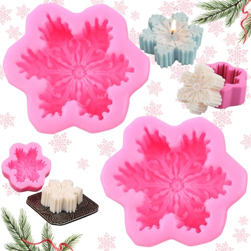 Brateuanoii 2 st ljusformar silikon 3D snöflinga ljusform, 3D snöflinga ljusform jul, gör-det-själv snöflingor silikon ljusform, handgjord tvålform snöflingor, ljustillverkning hantverk