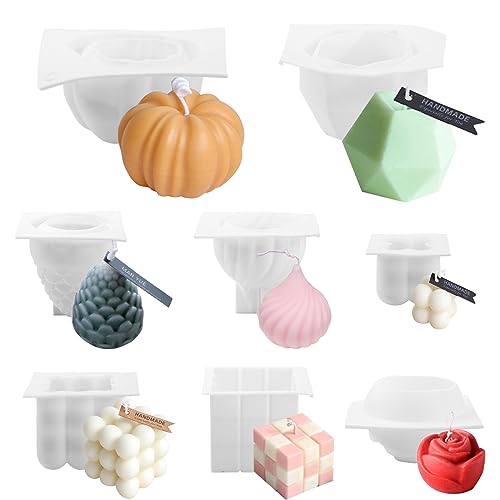 FINEASY 8 stycken ljusformar för gjutning, 3D gör-det-själv silikonform, ljusgjutning, formsset, ljus gör-det-själv tillverkningsset, ljusform, silikon, bubbla, ljusset, heminredning, tvål,