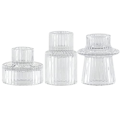 SPETYORT Ljushållare i glas, set med 3 – ljusstakar för bordsdekoration, mångsidig dekorativ ljushållare för pelare/avsmalnande/värmeljus (klar, 3 st)