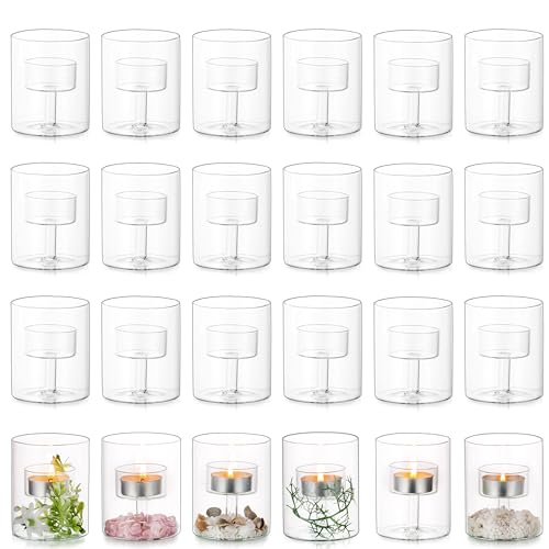 Uppsättning av 24 ljushållare i klara glas, 4,5 cm x 2,5 cm med lyxigt utseende