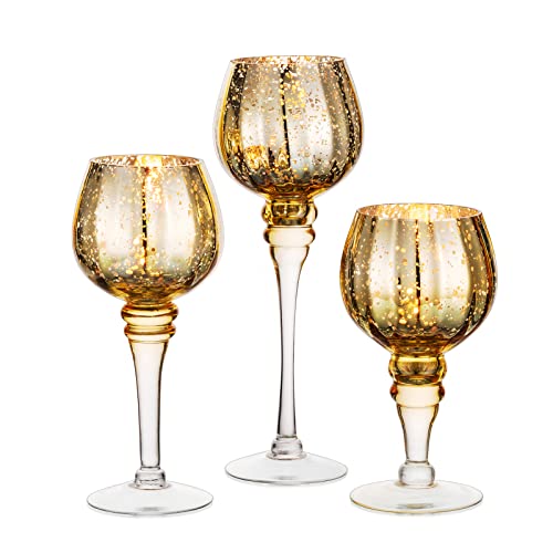 Nuptio Ljushållare i glas hög – 3 st stora värmeljushållare, guld, värmeljushållare, set för flytande ljus och pelarljus, kvicksilverljushållare för bröllopsfest juldekor