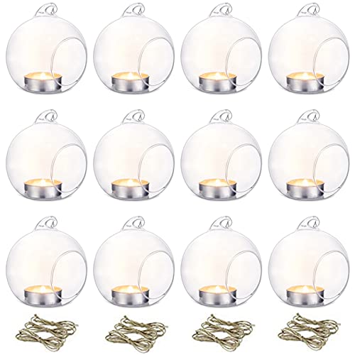 Nuptio 12 stycken 8 cm hängande ljushållare matvärmare glas jordglob växt terrarier ljusstakar suckulenta trädgårdslådor miniatyrblommor hem jul inomhus gör-det-själv-gåvor