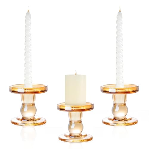 Ljushållare i glas för ljushållare för pelare/avsmalnande ljusstakehållare, dekorativa ljusstakar uppsättning av 3, för formella evenemang, bröllop, kyrka, högtidsdekor, bordsuppsats
