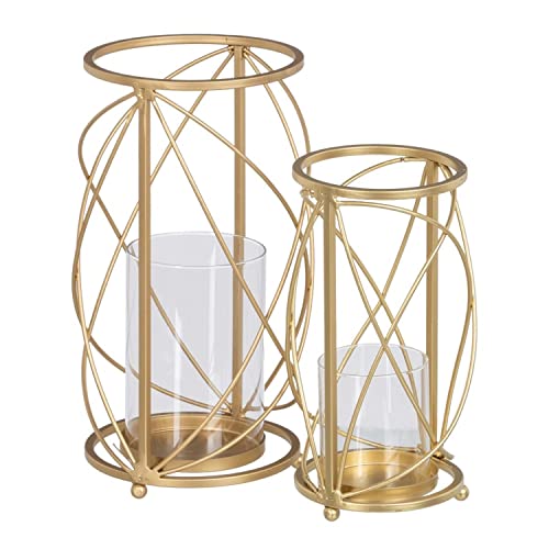 CosmoLiving by Cosmopolitan 57378 Large modern metallisk guld metall och glas ljushållare med hexagon silhuett | Set med 8,5 x 25,4 cm, 12,4 x 15,2 cm