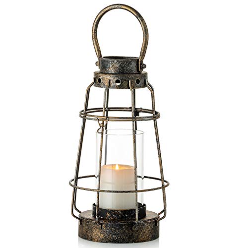NUPTIO Vintage ljuslyktor dekorativa med handtag rustik bärbar pelare ljushållare med glas smidesjärn bondgårdslykta för bröllopsfest bordsuppsats trädgårdsdekor inomhus utomhusbruk