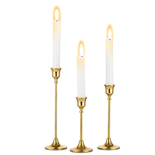 Inweder Guldljushållare för ljusstakar – set med 3 avsmalnande ljushållare i metall för bordsdekoration, ljusstakar, stativ, bröllopsfest, heminredning passar 2 cm diameter ljus