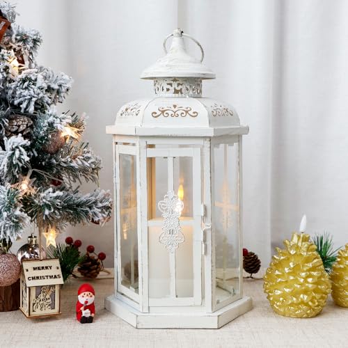 JHY DESIGN Dekorativa ljuslykta, vintage stil hängande lykta, 25 cm hög för LED-ljus, metall ljushållare för inomhus, utomhus, evenemang, fester, bröllop (vit med guldborstning)