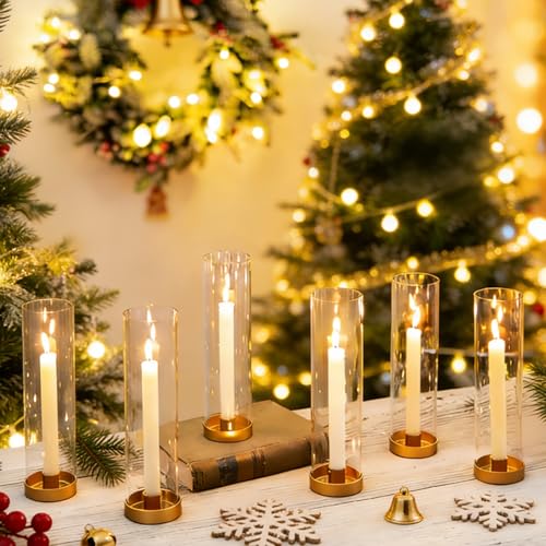 NUPTIO Glas Orkan Ljusstake 6 Stycken 30cm Höga Ljusstakar Guld Ljushållare Metall Konisk Ljusstake Bottenlös Cylinder Ljushållare Bröllopsfest Bord Centerpiece Matsal Dekor
