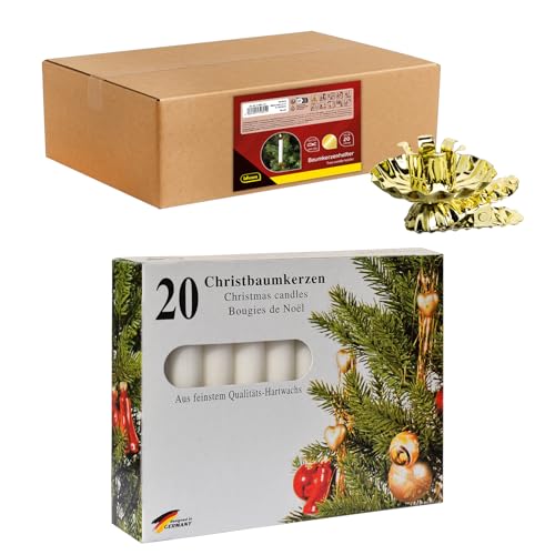 Idena 90489 – trädljushållare för julgran, 20 stycken i guld inklusive 20 trädljus i vitt, vintage ljushållare i metall, med klämma för grenar upp till 1,5 cm tjocka