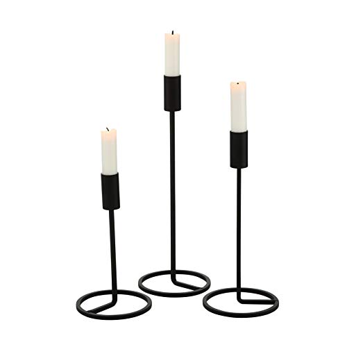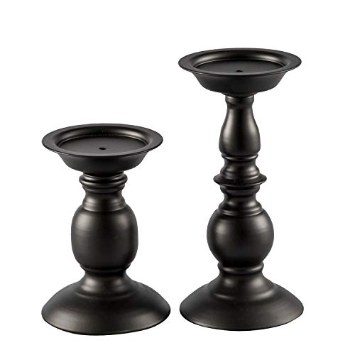Matt svart ljushållare av metallpelare – set med 2 ljusstakehållare, perfekt för hem soffbord dekoration, bordsuppsats för middag/vardagsrum – bästa bröllopspresent