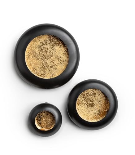 VIDI Ljusstakeset vägg dekoration | väggdekoration vardagsrum 3 stycken | guldornament väggdekoration för ljus | ljushållare, hängande metallväggdekoration i guld | Ø 13/18/23 cm