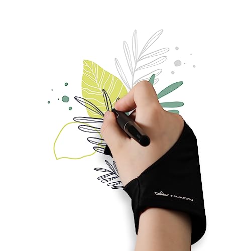 HUION Konstnärshandske för handske med handske för grafiksurfplatta, pappersskiss och ritning ljuslåda, elastisk lycra två fingerkonsthandskar, för höger hand och vänster hand