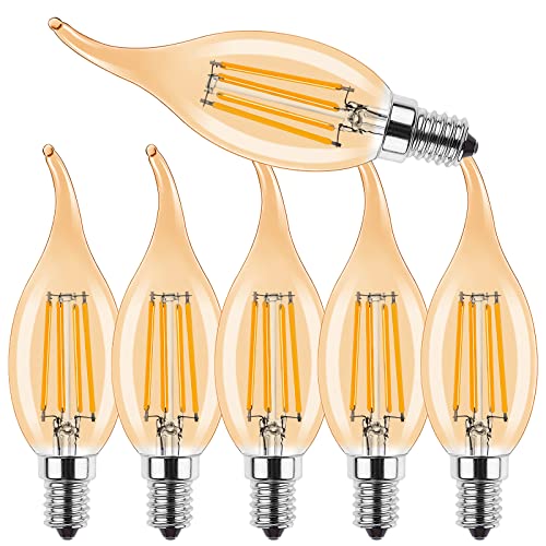 LVWIT Vintage glödlampa E14 ljuslampa, 4 W 410 lumen ersätter 40 watt, 2 500 K varmvit för ljuskronor hängande kristalllampa, ej dimbar, 3 års garanti, 6-pack