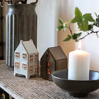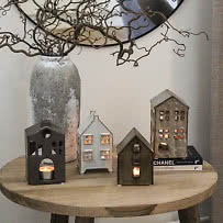 Västanvinden Ljuslykta hus grå/brun H13 cm