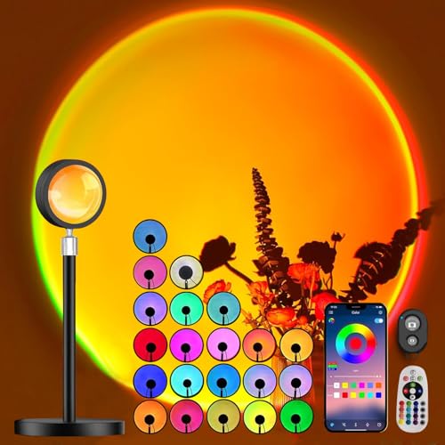 Solnedgång, app-kontroll 255 färger solnedgångsprojektion, musiksynkronisering solnedgång ljusprojektor, 12 dynamiska lägen LED regnbågsljus med fjärrkontroll för TIKTok/Selfie/sovrumsdekor