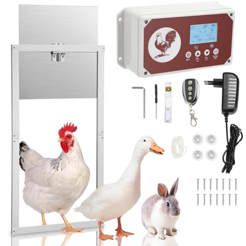 Daromigo Aluminum automatisk kycklinglucka batteri med LCD-display, timer, fjärrkontroll, ljussensor, 7,8 W kycklingdörr automatisk, klämskydd automatisk kycklingdörr för hönshus