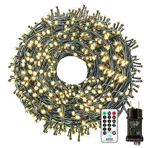 Bowfar Julgranslampor, 30 m 300 LED ljusslinga 8 lägen julbelysning med fjärrkontroll och minnesfunktion, IP65 vattentät för inomhus, utomhus, fest, jul, bröllop, varm vit