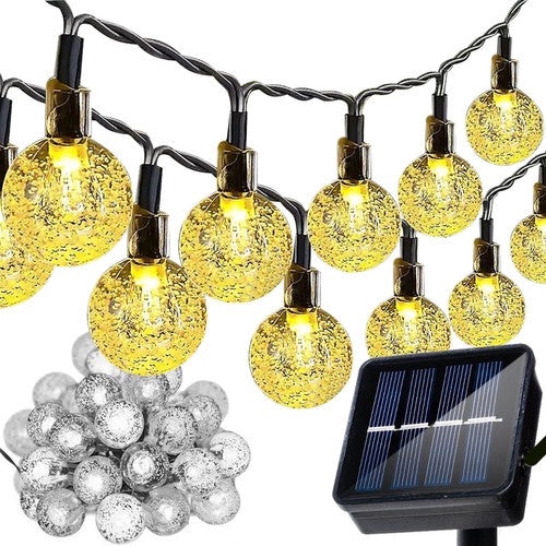 Solcellsdriven ljusslinga 7 m 50 bollar varmvit IP44 8 lägen