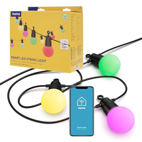 Hama LED-ljusslinga ansluten (WiFi, IP44, utomhus, expanderbar, kompatibel med Alexa, Google Assitant och Apple Siri, 12 x LED, 8 m), flerfärgad