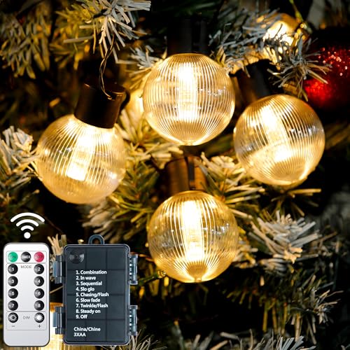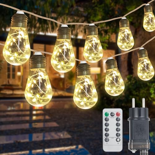 Yuusei LED-ljusslinga för utomhusbruk, 15 m, med 25 glödlampor, med fjärrkontroll, vattentät, trädgård, G40, med 1 reservglödlampor, varmvit, för fest, bröllop, terrass och inomhus
