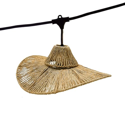 Utomhus anslutningsbar ljusslinga med naturlig repskärm, bohemisk stil, 7 glödlampor, E27, LED-uttag, varmvit, WAVY LIGHT, 6 m
