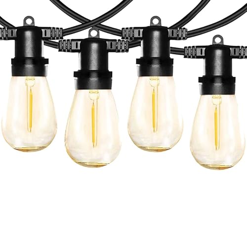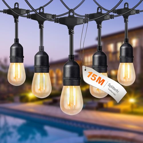 BRIMAX Led ljusslingor utomhus 230V ström 50ft (15M) med 15 stycken S14 E27 glödlampor 2W 2700K varmvit led ljusslinga IP44 vattentät plast glödlampor ljusslingor för camping, trädgård, terrass