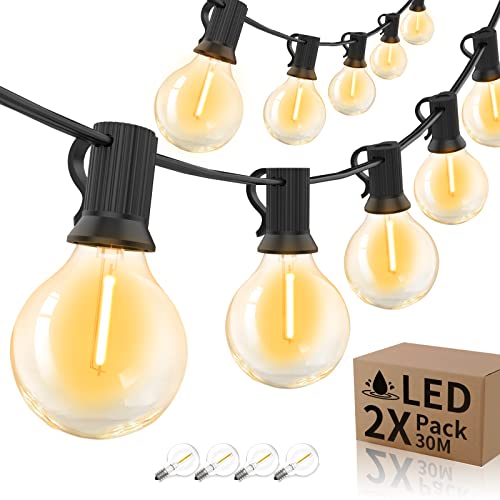 Yuusei LED-ljusslinga för utomhusbruk, 30 m, med 50 glödlampor, med fjärrkontroll, vattentät, trädgård, G40, med 2 reservglödlampor, varmvit, för fest, bröllop, terrass och inomhus