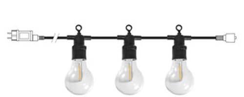 LED Ljusslinga (3m) - Matt Svart IP65, med Glödlampa (6 Glödlampor)