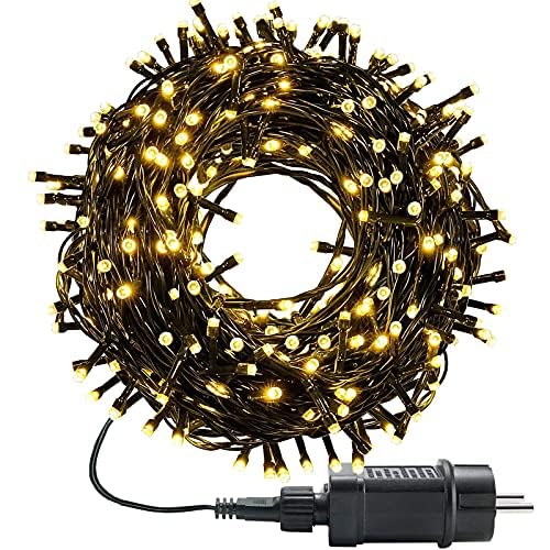 BrizLabs 200 LED ljusslinga inomhus 20 m varm vit strömdriven julbelysning 8 lägen EU-kontakt julbelysning vattentät för utomhusbruk, inomhus, bröllop, fest, träd, trädgård, halloween, dekoration