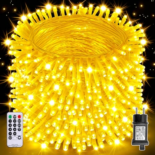 RcStarry Fairy Lights-plugg, 100 m 1 000 LED koppartråd ljusslingor varm vit, 101 m LED-ljusslinga huvuddriven med fjärrkontroll, timer, 8 lägen, minne, vattentät för inomhus- och utomhusdekor