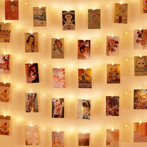LAC FUTURE Ljusslinga med klämmor för foton 5 m 50 LED – fotogirlang 30 fotoklämmor ljuskedja batterier inomhus – fotokoppel med klämmor för tonåringar rum dekoration