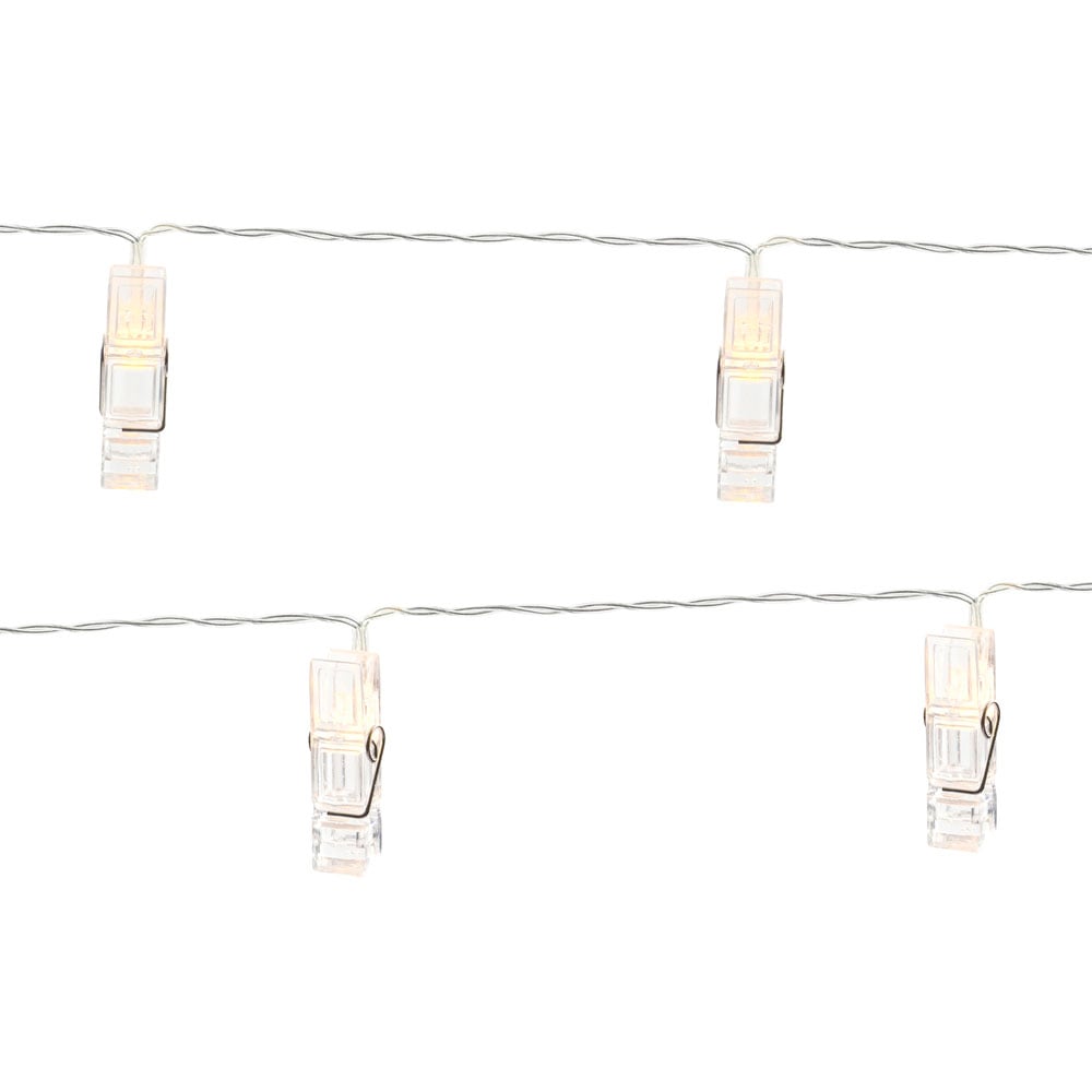 LED-ljusslinga med fotoklämmor för inomhus- och utomhusbruk i varm vit – 2 meter med 10 klämmor för foton, batteridriven belysning för hem, rum, jul, bröllop, födelsedag, fest, campare