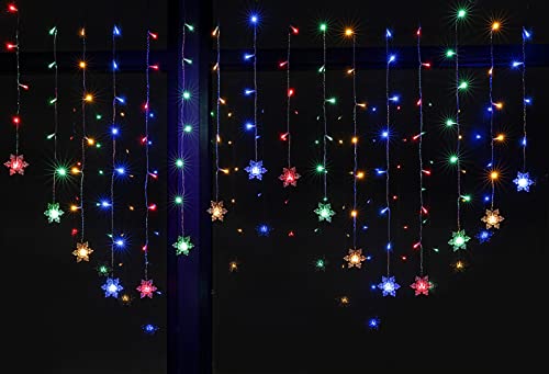 BLOOMWIN Julfönsterlampor 2 m x 1 m 104 LED-lampor gardin ljusslinga juldekoration för inomhusfest sovrum Snöflingor – flerfärgad