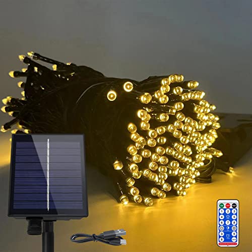 MOLVCE Utomhusslinga, 30 m, 300 LED-ljusslinga, solcell med fjärrkontroll, 8 lägen, timer, USB-kabel, dimbar, solcellsljuskedja, väderbeständig, för balkong, juldekoration, färgglad